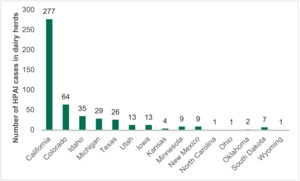 The Animal and Plant Health Inspection Service (APHIS) has established a page linking to the latest updates on the situation at Highly Pathogenic Avian Influenza (HPAI) Detections in Livestock | Animal and Plant Health Inspection Service (usda.gov), which also includes a regularly updated map of states that have detected the current strain of influenza in livestock.