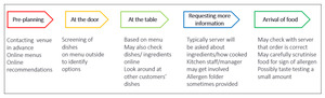 Compared with the phases of arriving at the venue and ordering/food arrival engagement with pre-planning was the most important predictor of how happy they were with the eating out experience and how welcome they felt. A closer look at the pre-planning index enabled identification of the most important indicators of a good pre-planning experience. The quality and sufficiency of the information identified was key. Finding no information was considered as heralding a bad experience. A good pre-planning experience meant finding sufficient information to make confident decisions about what to avoid and that allergen information was understandable or accessible. It is instructive to consider these results in line with previous research that found that greater confidence in the information provided by eating out venues was associated with better quality of life (Barnett et al., 2017) and that frequent checking of information predicted poorer quality of life. It seems reasonable to suggest that insofar as frequent checking results from dissatisfaction with the information provided, being able to access detailed, relevant, understandable and consistent information about allergens as part of pre-planning activities will provide some assurance of the ability of the venue to cater effectively for those that need to avoid particular allergens. In turn this will help ensure further checks at later stages of the eating out journey are proportionate rather than excessive.