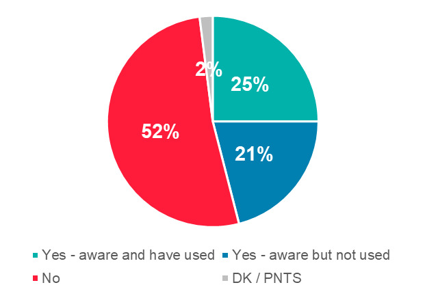 A minority of users are aware of the regulatory status of CBD products. 42% are aware that CBD products have not been authorised for use in food and food supplements in the UK (Figure 9) and 45% are aware of the FSA list of products that are being considered for authorisation (with 25% saying they have used this list) (Figure 10).
