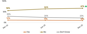 Food affordability: Close to one in four (24%) respondents were worried about being able to afford food in December 2025. This is in line with all months from August 2025 (22%-25%).