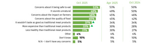 Between October and December 2025, questions were also asked about consumer views on cell-cultivated products (October), antimicrobial resistance (November), raw milk (November), Christmas (November), cannabidiol (December) and school meals (November and December).